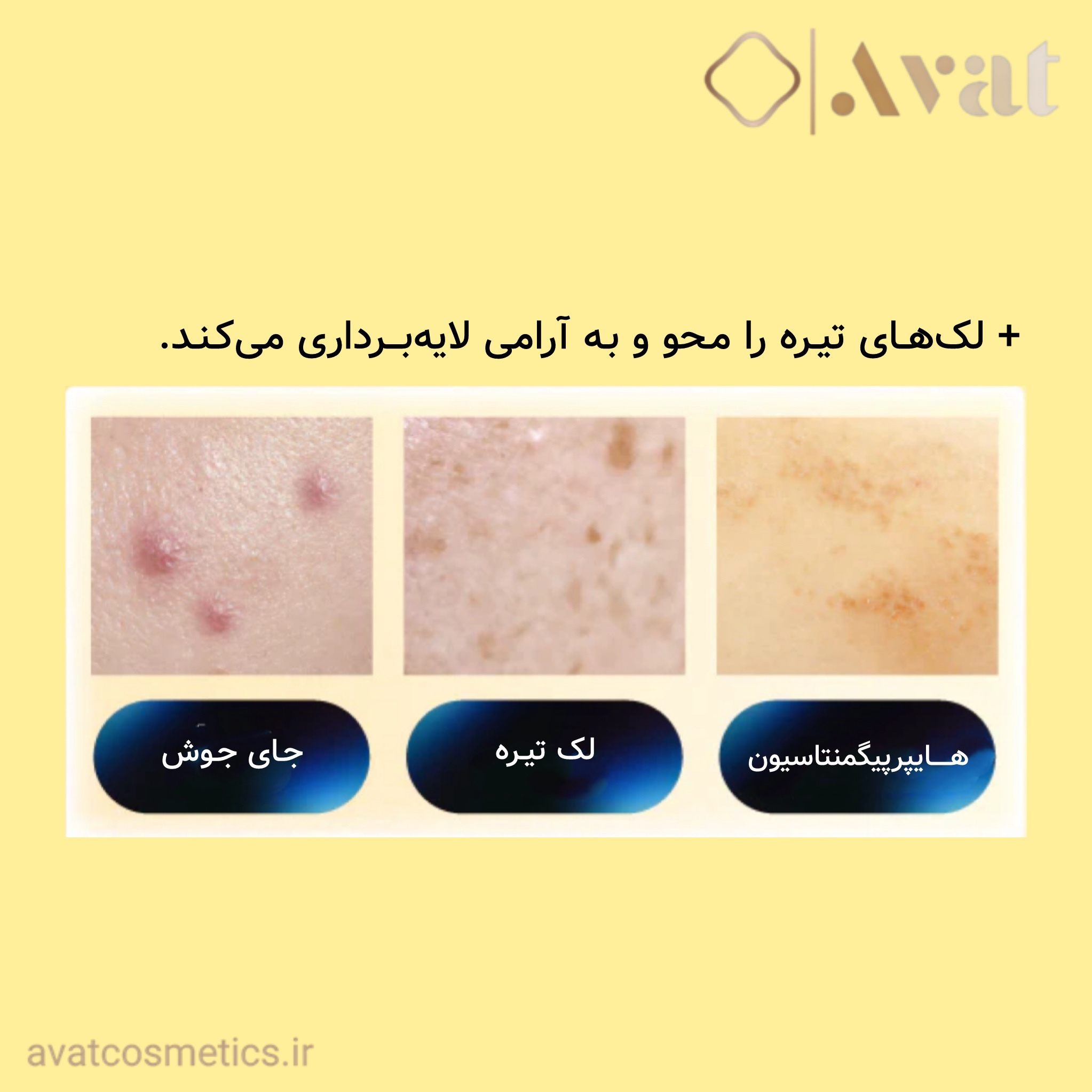 ترانگزامیک اسید به طور خاص برای از بین بردن لکهای ناشی از آفتاب، ملاسما و هاپیرپیگمانتاسیون به این تونر اضافه شده است که از تشکیل لکهای جدید جلوگیری میکند. گلوتاتیون، علاوه بر روشنسازی پوست، در تحریک کلاژنسازی نیز موثر بوده و به ترمیم و بازسازی پوست کمک میرساند. آسکوربیک اسید میتواند موجب کاهش تیرگیها، لکههای پوستی ناشی از آفتاب یا پیری و روشنشدن رنگ پوست شود. پنتنول با خاصیت آبرسانی و مرطوب کنندگی خود سد حفاظتی پوست را تقویت میکند و مانع از تحریک پوست میشود.